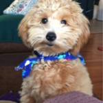 They are amazed that he is such a small Goldendoodle. Everyone knows about their wonderful personalities, but he’s the first mini they’ve seen, and they are “love struck”! I really should keep a stack of your business cards with me! I tell folks about your website.