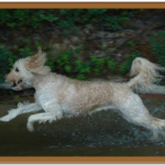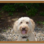 Molly is an F1 standard Goldendoodle who was born on May 23, 2004. She’s on the small side weighing just 51 pounds which is good because she loves to sit in my lap. My husband and I were fortunate enough to adopt her when another couple changed their minds. Molly is a wonderful member of our family and brings us joy every day. All I have to do is look at her and she makes me smile. She loves to play ball, swim in the lake at our summer home, chase Frisbees, and go for walks, but her very favorite activity is just being with us. She has such a loving nature that I thought she would make a good therapy dog. So, at just shy of nine years of age she took and passed both the Canine Good Citizens and the Therapy Dog International tests with flying colors. We will be visiting several nursing homes and hospitals in the area, but our favorite activity is visiting local colleges during exam weeks to help the students deal with the stress and pressure of finals.